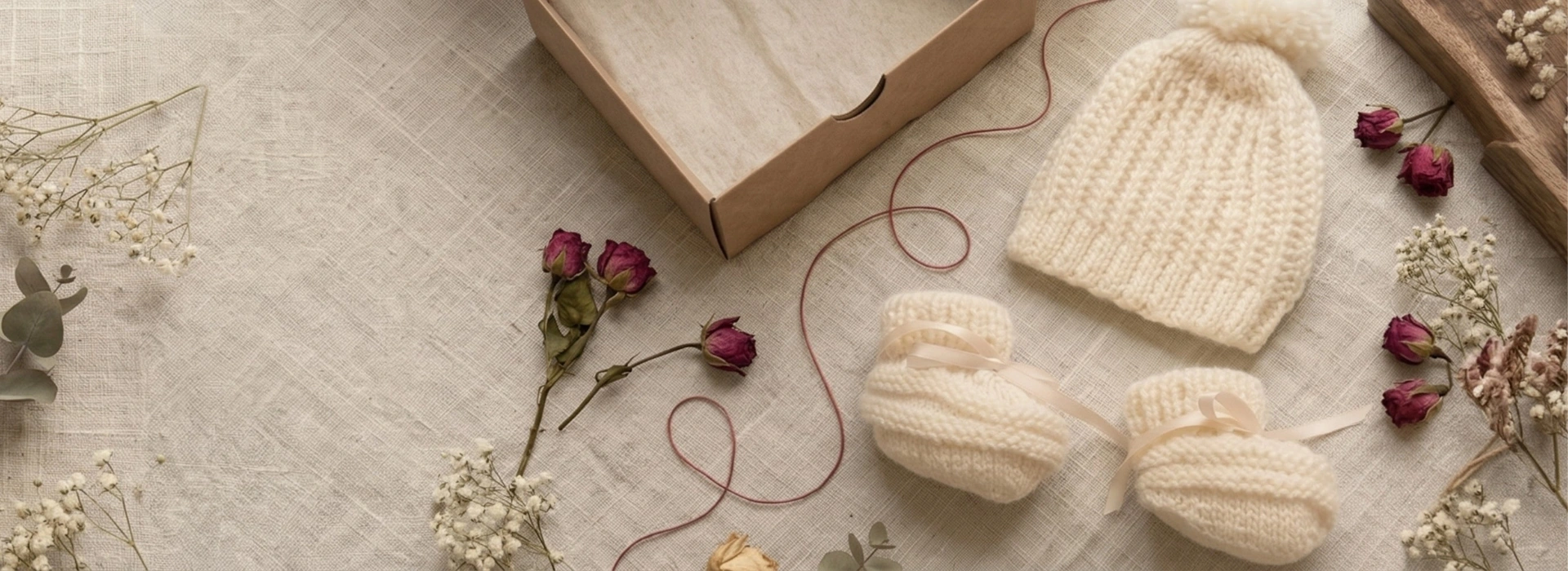 Ajuar de Recién Nacido Tejido a Mano – Conjunto Gris y Blanco