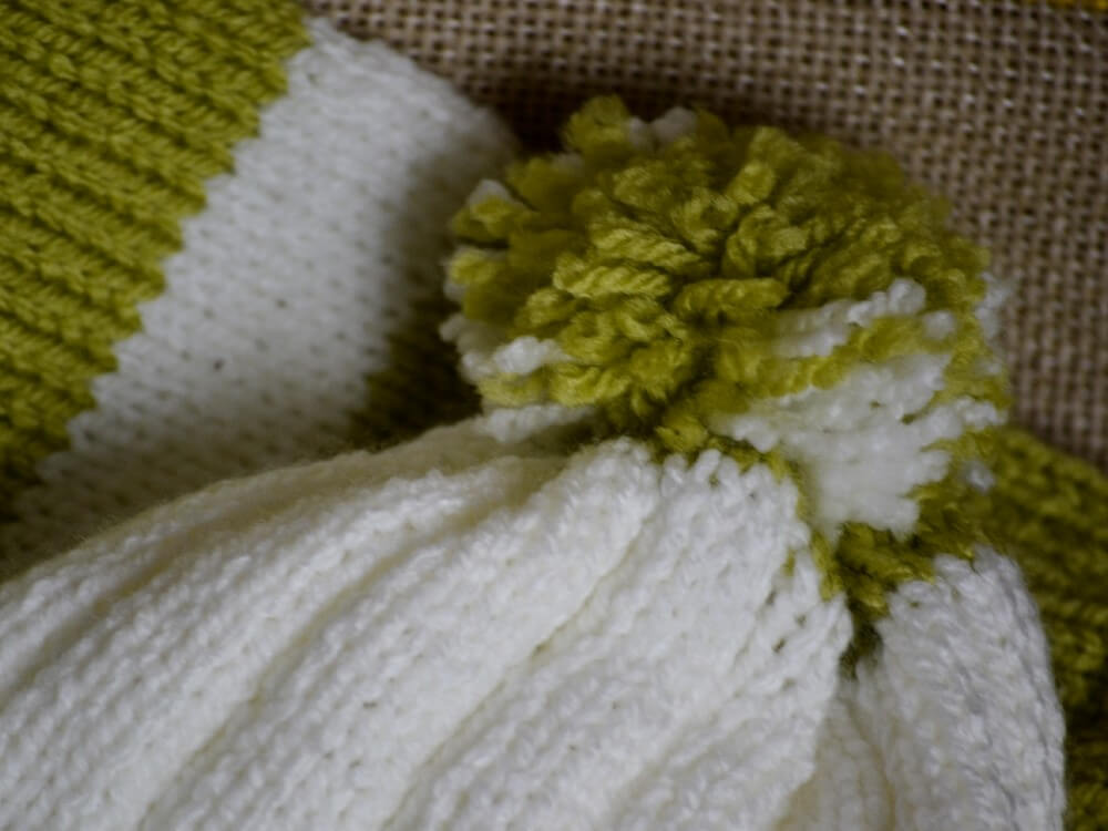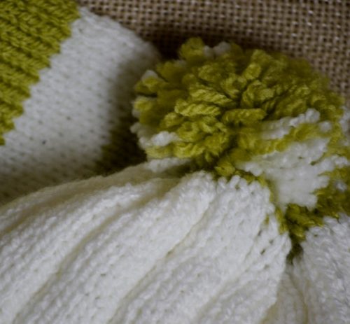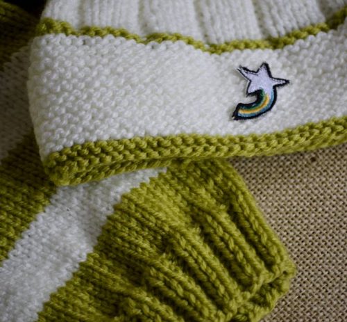 - Conjunto de sweater y gorro blanco con verde manzana